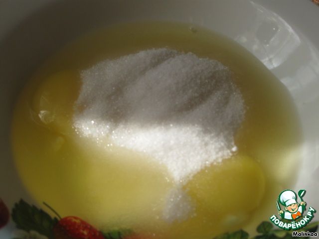 • Яйца растереть с сахаром, добавить ванильный сахар, соль, творог. Размешать до однородной массы.