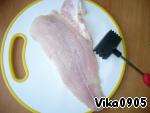 Рыбку отбить слегка. Кто-то заворачивает в пакет при отбивании, чтобы на брызгало. Я просто не бью молотком, а надавливаю. Рыбка - не мясо, она мягкая.