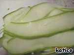 Кабачки при помощи ножа для чистки овощей режем на тонкие ленты.
