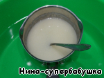 Когда манка будет готова, быстро охладить её до 70*С. Я поставила в таз с холодной водой.