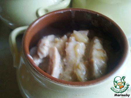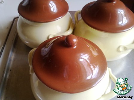 Заливаем в горшочки и закрываем крышками. Ставим в разогретую до 170 градусов духовку на 45-55 минут