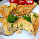 Вешенки откидываем на дуршлаг - чтоб стекла лишняя вода, обмакиваем в кляр и обжариваем в разогретом жире до золотистого цвета.