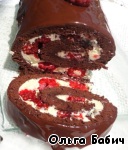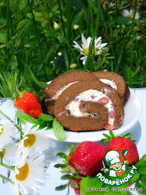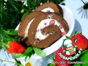 Рецепт «Шоколадный рулет со взбитыми сливками и ягодами»: