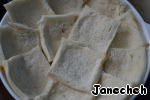 Форму смазать растительным маслом, выложить ломтики хлеба внахлест.