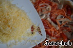 Сыр натереть на средней терке. Посыпать сыром запеканку.