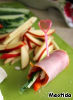 Название двояко.. но и закуска полностью ей соответствует: 1. приготовление займет несколько минут 2. к рюмочке коньяка или водки - на один зубок 3. все.. как всегда, - просто и быстро :) несколько ломтиков огурца, яблока, сладкого перца и сыра, заворачиваем в ломтик мяса, приправляем горчицей, украшаем помидорами черри.... а знаете ли Вы, какая овощная культура самая древняя?..