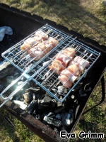 Жарим шашлычки с 2-х сторон, выкладывая на решетку