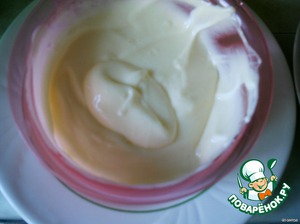 Майонез выложить в мисочку, растереть с сахаром (мне вкус майонеза с сахаром не понравился, можно пропустить этот шаг).