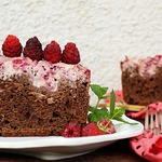 Очень простой, но вкусный пирог. Шоколадное тесто и ароматная ягода в творожном креме - отличное сочетание. Пирог особенно вкусен в холодном виде. Рекомендую!