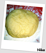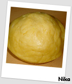 Тесто вымешивала руками до тех пор пока оно не перестало липнуть к рукам.