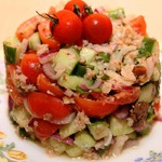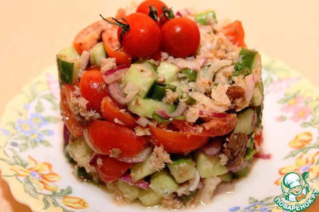 Описание: Это популярный итальянский салат из овощей и хлеба, который подают, как правило, в летнее время. Для салата берeтся зачерствевший хлеб. Немного истории... Этот салат родился на кухне бедных итальянских крестьян. Обычно в деревенских домах хлеб пекли один раз в неделю, и несвежий хлеб надо было как-то утилизировать. С приходом жары этот салат становился для крестьян основной едой. Чтобы прожевать его, особенных усилий не нужно, поэтому ее называли «стариковской едой». Есть несколько вариантов подачи этого салата на сайте. Мой вариант несколько отличен по ингредиентам и способу приготовления.