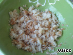 Заливаем её водою, немного, чтобы не получилась "квашня", разминаем пальцами в крошку. |