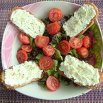 Я пробовала как-то заменить на филадельфию на гренках, тоже схедобно, но козий сыр намного нежнее. Тёплый сыр, хрустящие гренки и порция свежего разного салата - просто рай на земле!