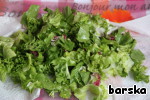 Поставить духовку на разогрев на 200*С. Салатную смесь (здесь будет уместна готовая салатная смесь с 3-4 видами зелёного салата, типа "Паризьен" или "Гармония") промыть и обсушить. |