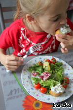 Мой главный ценитель за трапезой. Кстати, дочка сказала, что этот салат вкуснее, чем спагетти! Вы когда-нибудь слышали такой комплимент салату из уст ребёнка? |