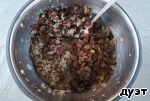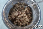 В смесь добавляем промытый изюм и фундук (орехи я предварительно размяла скалкой).