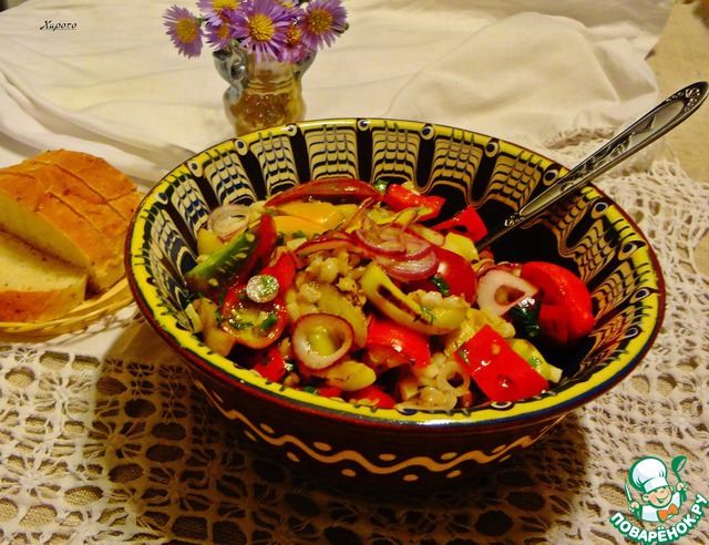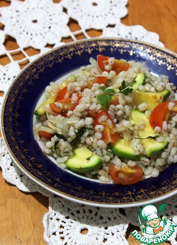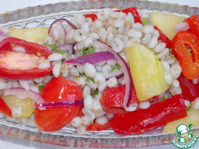 Ингредиенты для «Тeплый салат из перловки с овощами»: