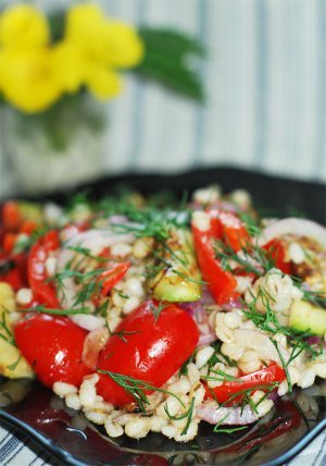 Предлагаю Вам рецепт салата и сразу предвижу реакцию с сарказмом у многих. И напрасно, эта "солдатская " каша на самом деле являлась продуктом питания Римских легионеров. А в сочетании с овощами в летнюю жару может прекрасно заменить полноценный обед или ужин.