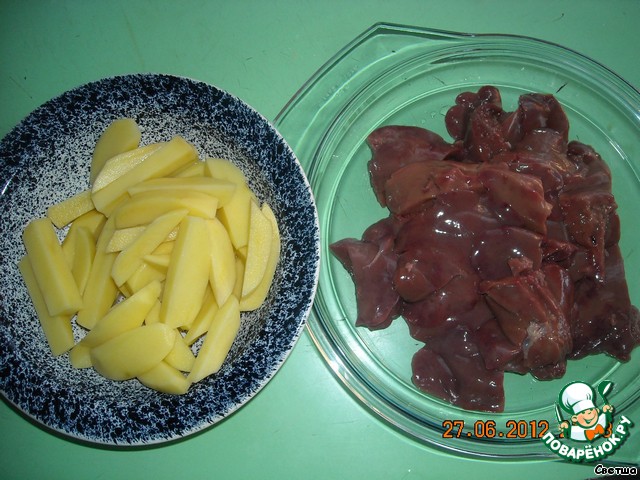 - Печень куриная — 300 г