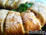 Сделать надрезы ( нож лучше намочить), посыпать кунжутом. Выпекать в разогретой на 200 градусов духовке 20 минут.