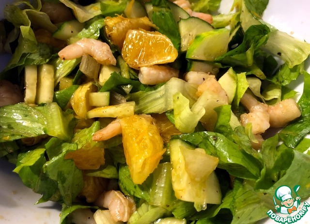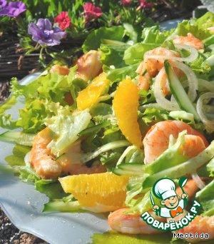 Наступила пятница - день, завершающий рабочую неделю. Наполнить уставший организм витаминами и полезными микроэлементами, да и просто поднять настроение, поможет этот яркий салат. Возьмем огурец, апельсин, лук, листья салата и креветки, немного легкой заправки и... Несколько минут. Пикантный, яркий, бодрящий салат готов, которым можно порадовать не только себя, но и гостей!