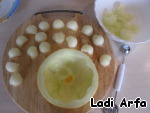 Дыня у меня небольшая, я её разрезала пополам и ложечкой для фруктов удалила сначала семена, а потом мякоть.