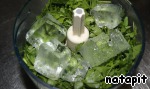 Вымытую и просушенную петрушку поместить в блендер, влить стакан ледяной воды, добавить 3-4 кусочка льда и перемолоть в мелкую кашицу.