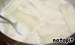 В горячем молоке растворить сахар и ваниль, поместить в него баклажаны и варить 7-8 минут. Остудить.