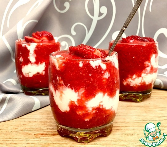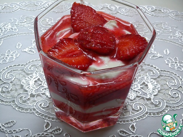 3. Выкладывать полученные массы слоями: первый слой клубника, затем творожная масса и т. д. Последним слоем должна быть творожная масса. Сверху можно посыпать орехами и шоколадом.