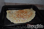 Затем с другой стороны. Я использовала мини-гриль и простой противень, т. к. у меня лепешка большая.