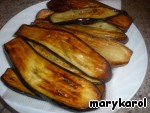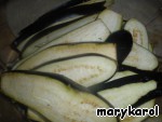 Баклажаны режем пластинками вдоль, солим, оставляем на 10-15 минут, чтобы стекла горечь