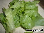 Майонез смешиваем с чесноком, пропущенным через пресс, петрушку моем, на блюдо выкладываем лоло-россо