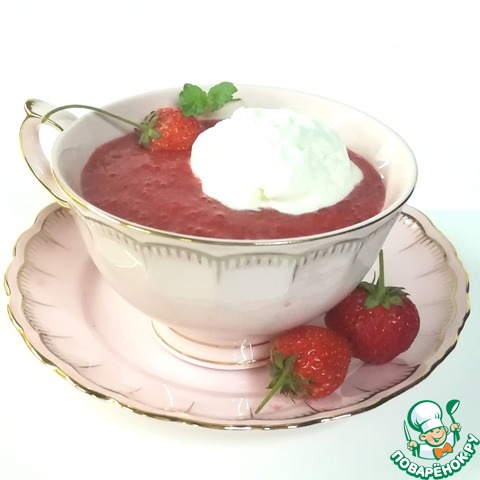 Elenita, попробуйте сделать так, 2 стакана клубники пробейте блендером, добавьте полстакана питьевой воды, добавьте сахар 2 ч.л (вот как тут написать точное количество сахара, здесь дело вкуса) размешайте миксером, получится фреш напиток. Добавите больше клубники, получится крем - суп, сверху УКРАСЬТЕ мороженым или взбитыми сливками, листочком мяты. Можно капнуть лимонный сок.