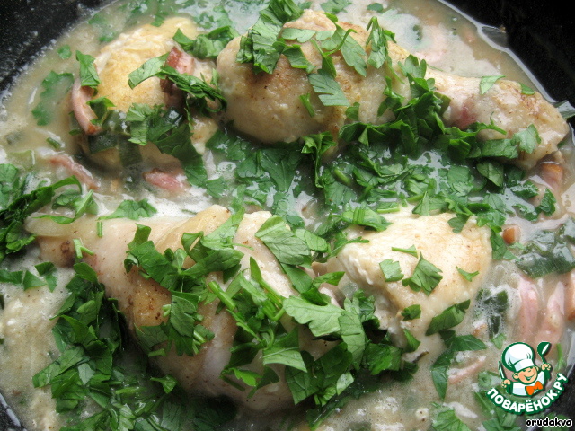 Посыпать мелко нарезанной петрушкой и добавить оставшееся пиво. Тушить на небольшом огне при закрытой крышке до готовности (около 20-30 минут).