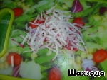 Затем майонезную часть смешать с овощами и оставшимися рубленными яйцами