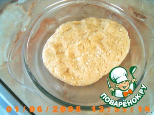 • Замесите тесто: творог смешать с 75 гр. сахарного песка, яйцом, солью, растительным маслом. К муке добавить разрыхлитель и смешать с творогом. Тесто накрыть кухонным полотенцем и оставить минут на 10-15 при комнатной температуре.