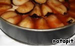 Откинуть сливы на дуршлаг (сохранив жидкость) и выложить на тесто, слегка вдавливая, по кругу - начиная от внешнего кольца к центру.