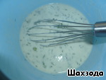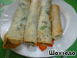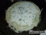 Приготовить блинчики, сначала взбиваем яйца, всыпаем постепенно муку, соду. Когда мука впитается и получится однообразная масса, начинаем постепенно вливать молоко, растительное масло и тщательно перемешивать (сначала мука, потом молоко – тогда комочков не будет). Добавить в тесто измельченную зелень.