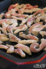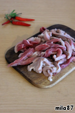 Мясо обжариваем на сильном огне до зарумянивания, затем убавляем огонь и жарим до готовности. Я делала это в сковороде гриль.