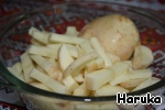 Для начала необходимо молодой картофель помыть, почистить и порезать соломкой или кубиками.
