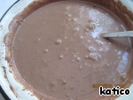 Добавить муку, гашеную соду и растопленный шоколад, размешать до однородности