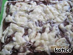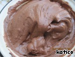 На творог поочередно выкладываем примерно по 1 ст. л. крема и шоколадного теста, покрывая всю поверхность творога