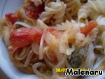 Вылить сверху на рыбу приготовленный овощной соус и подать с кус-кусом. Вкуснейший ужин за считанные минуты у вас на столе.