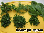 Нашинкуйте зелень укропа, петрушки и шпината. Перемешайте.