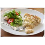 Взять глубокую форму. У меня стеклянный салатник. Положить первый блин, на него охлажденный ганаш и бананы.