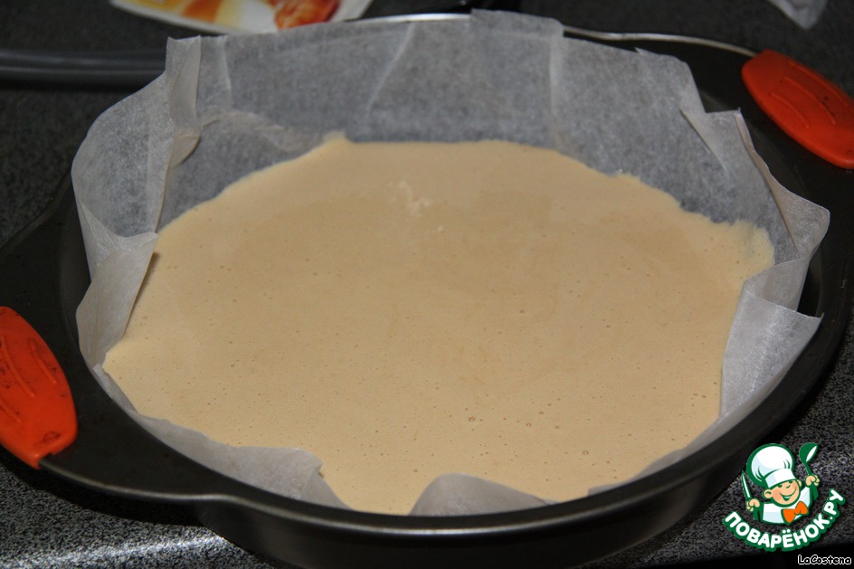 Все взобьем и перельем в форму, которую застелем бумагой для выпечки.