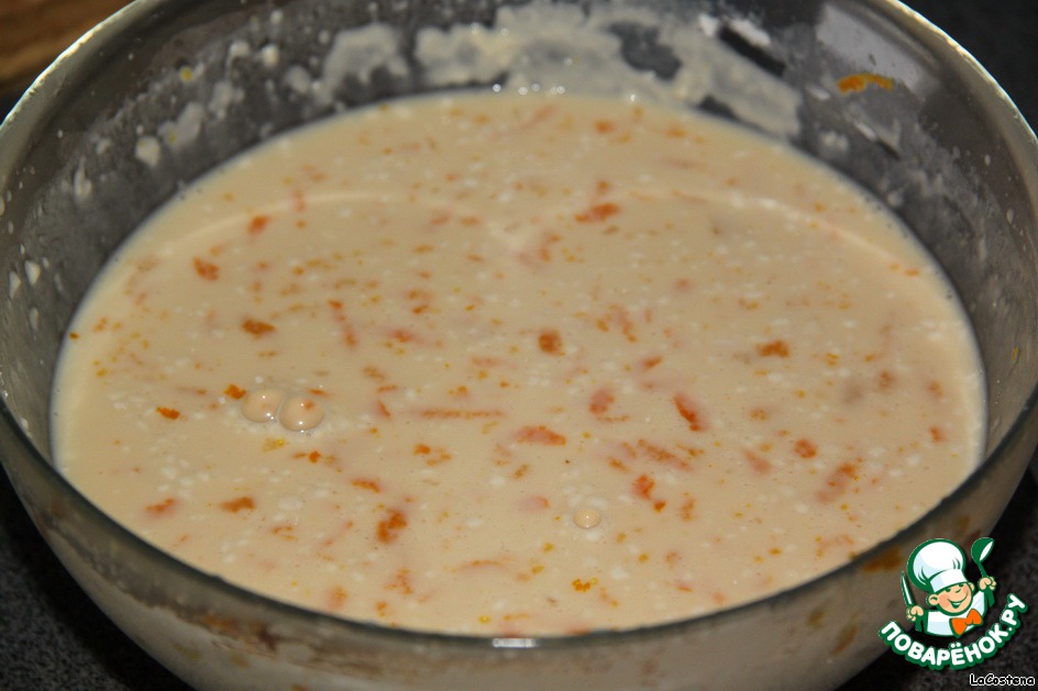 Добавим цедру апельсина и все перемешаем, чтобы не было комочков.