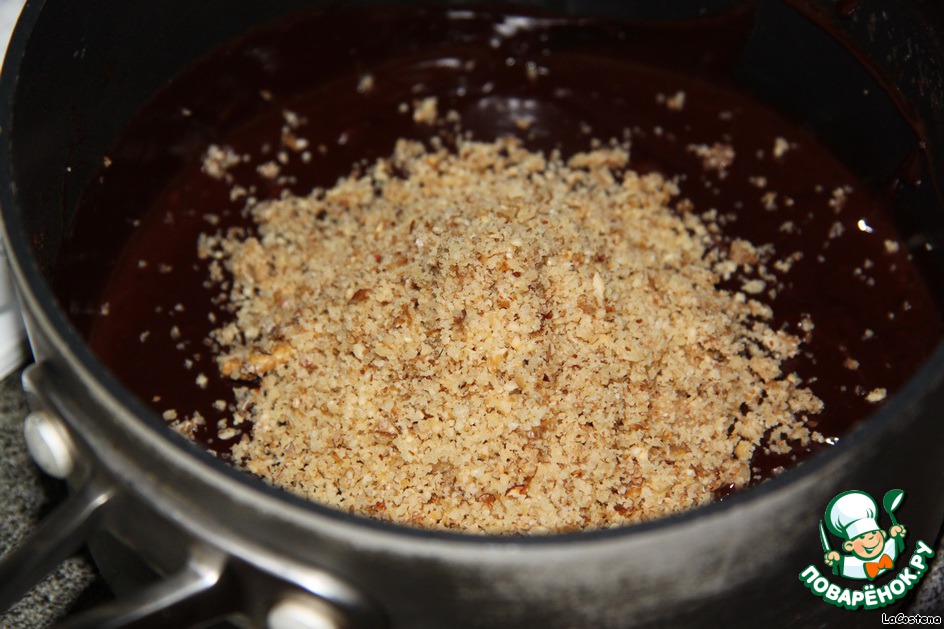 Ореховую смесь перемолоть в блендере и добавить в ганаш. Оставить остужаться при комнатной температуре.