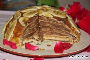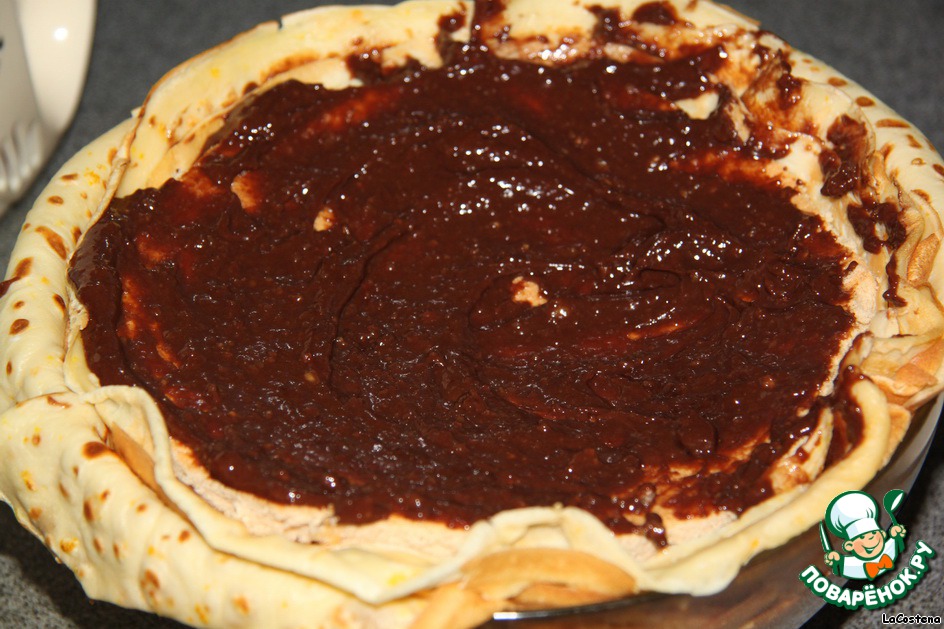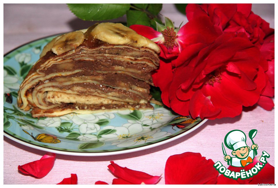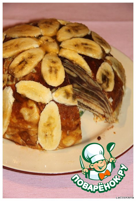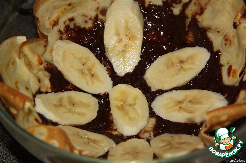 Рецепт «Блинный пирог с шоколадом и бананами»: