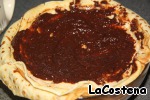 Достать пирог из морозилки, дать постоять при комнатной температуре минут 20 и перевернуть на блюдо.